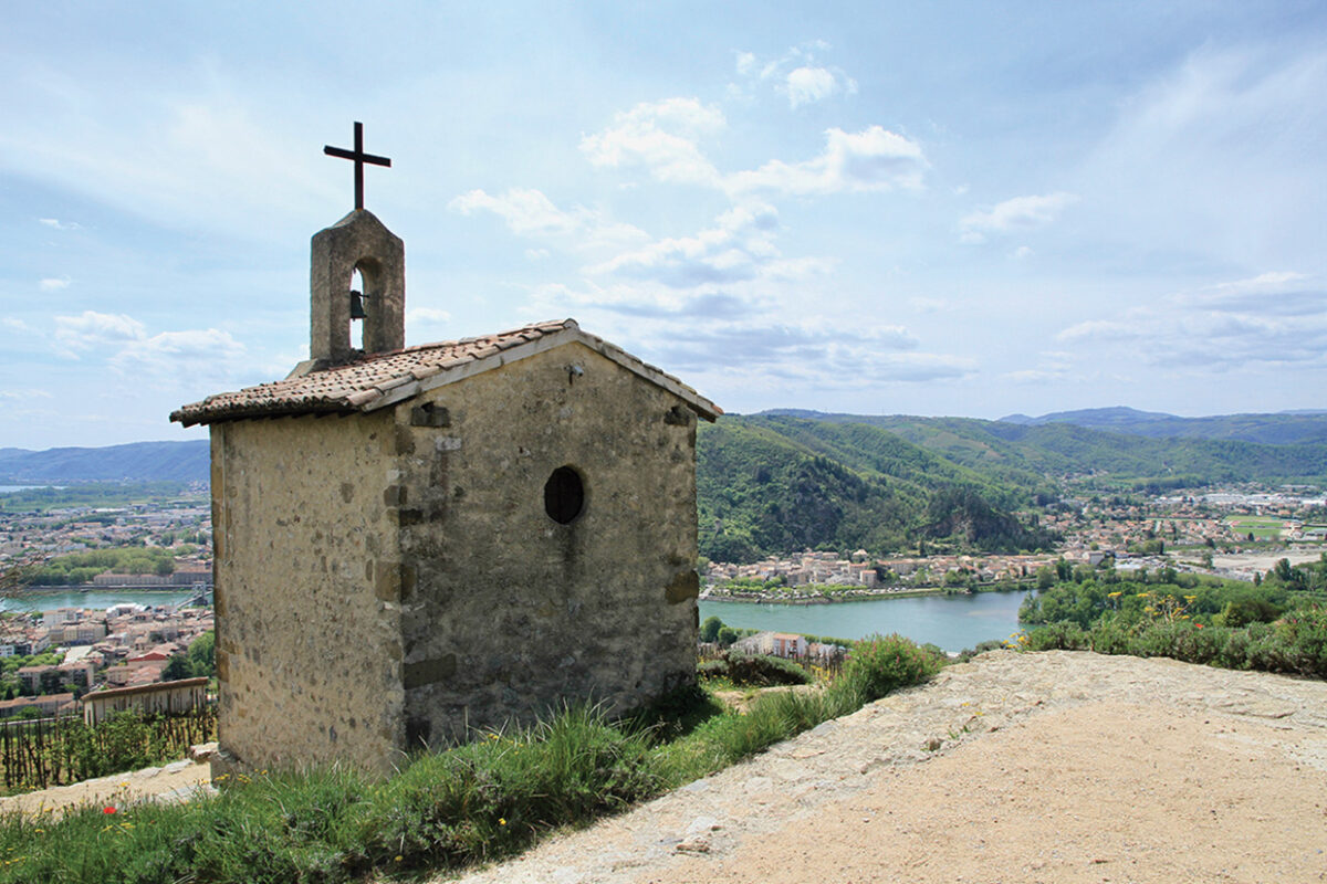 Du centre-ville, un petit sentier un peu raide, à travers les vignes qui s’éveillent, mène au point de vue. Le panorama qui s’ouvre sur les méandres du fleuve, les coteaux ardéchois en face et les vignes de l’appellation est la plus belle des récompenses !