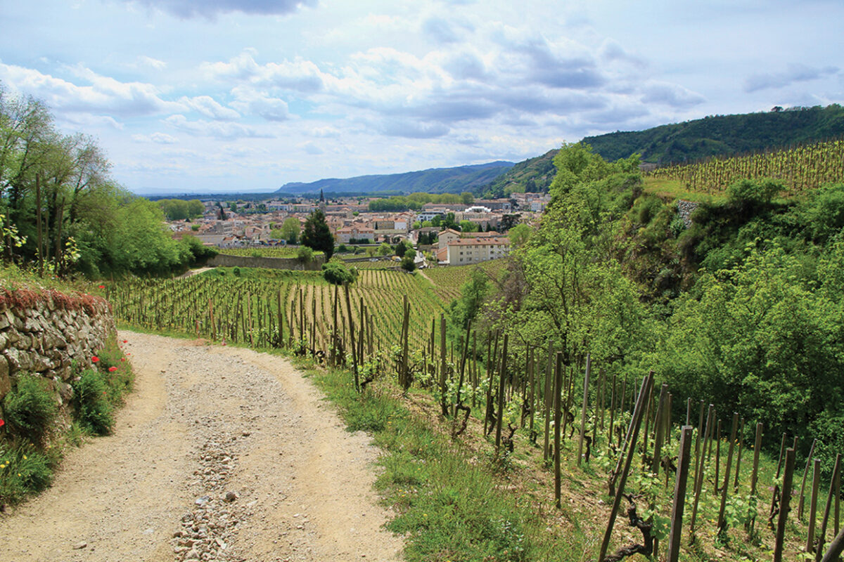 Lovée au bord du Rhône, au pied des collines de l’Hermitage, la petite ville aux airs faussement alanguis de Tain-l’Hermitage, côté Drôme, est le fief des célèbres appellations Hermitage et Crozes-Hermitage.
