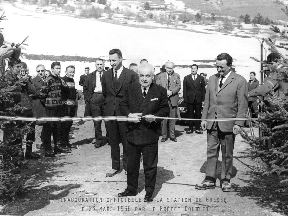 Inauguration de la station de Gresse-en-Vercors en mars 1966 par le préfet Maurice Doublet © Gresse-en-Vercors