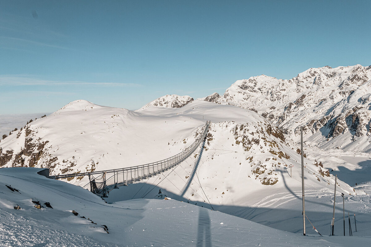 Le sommet de la Croix de Chamrousse, à 2 250 mètres d’altitude, offre une vue incroyable sur le mont Aiguille, les lacs Robert, les massifs de la Chartreuse et du Vercors. Le véritable clou du spectacle est la passerelle himalayenne : un délicat pont de moins d’un mètre de large suspendu à flanc de montagne au-dessus de la légendaire piste du couloir de Casserousse. Surtout, ne regardez pas en bas ! Cette traversée vertigineuse de 130 mètres, à 25 mètres au-dessus du sol, pourrait bien donner quelques frissons aux montagnards les plus avertis.