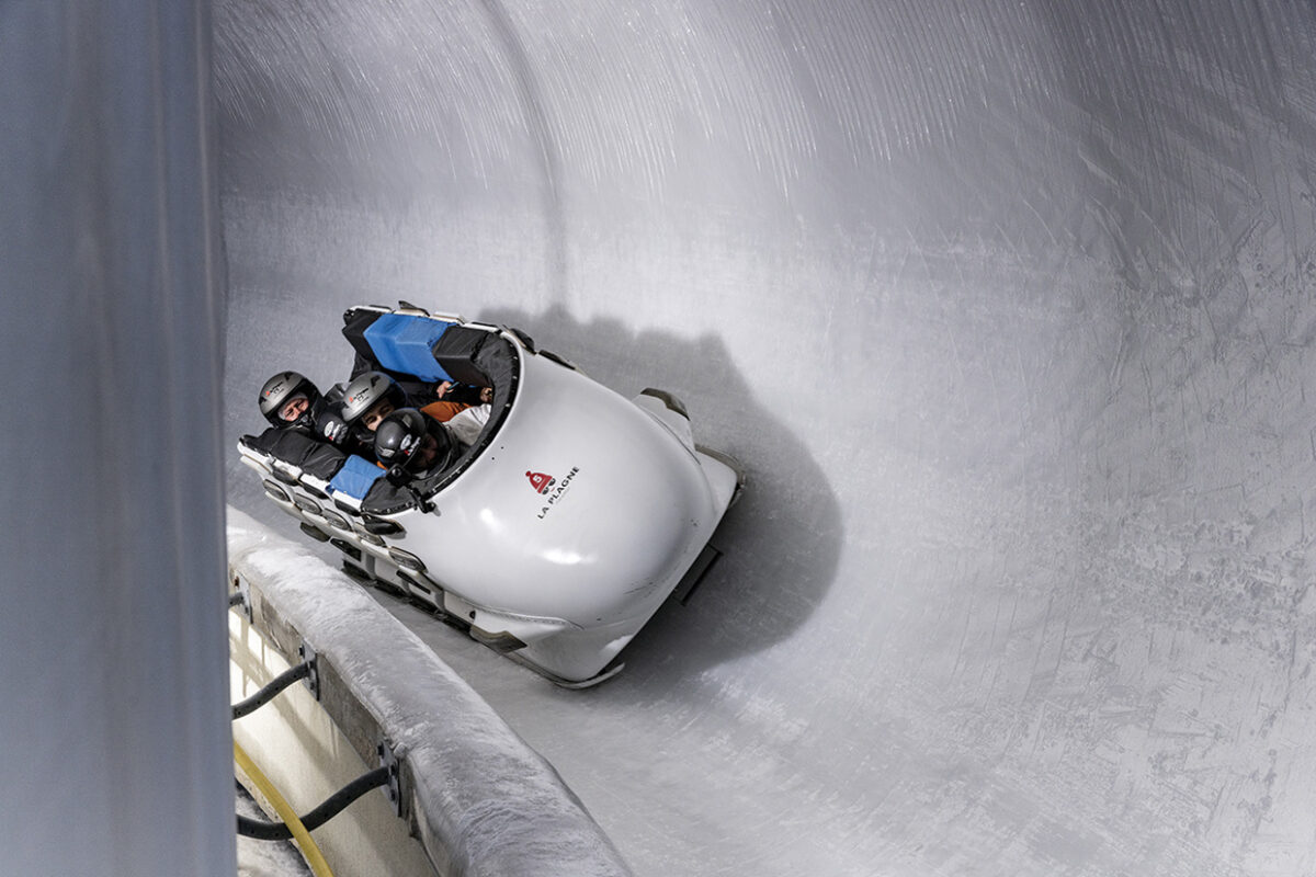 Héritage olympique, créée lors des Jeux olympiques de 1992, la piste de bobsleigh plagnarde, toujours en activité, accueille des compétitions internationales et des entraînements de haut niveau. Elle est aussi la seule piste olympique de bobsleigh, luge et skeleton en France (et l’une des rares au monde !), ouverte au public. Nichée sous Plagne 1800, elle déroule 1,5 kilomètre de descente et est ponctuée de 19 virages pour 124,5 mètres de dénivelé négatif.